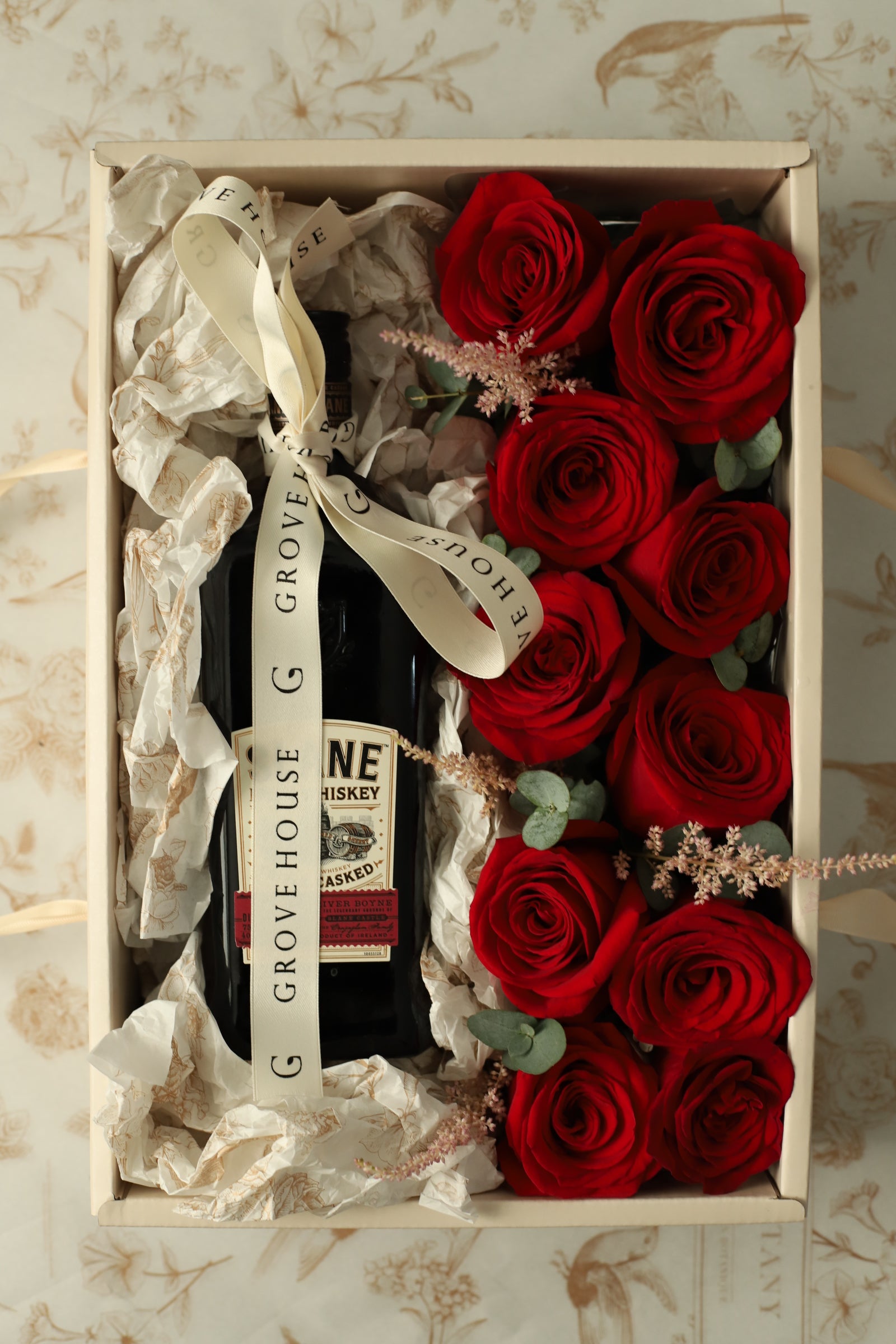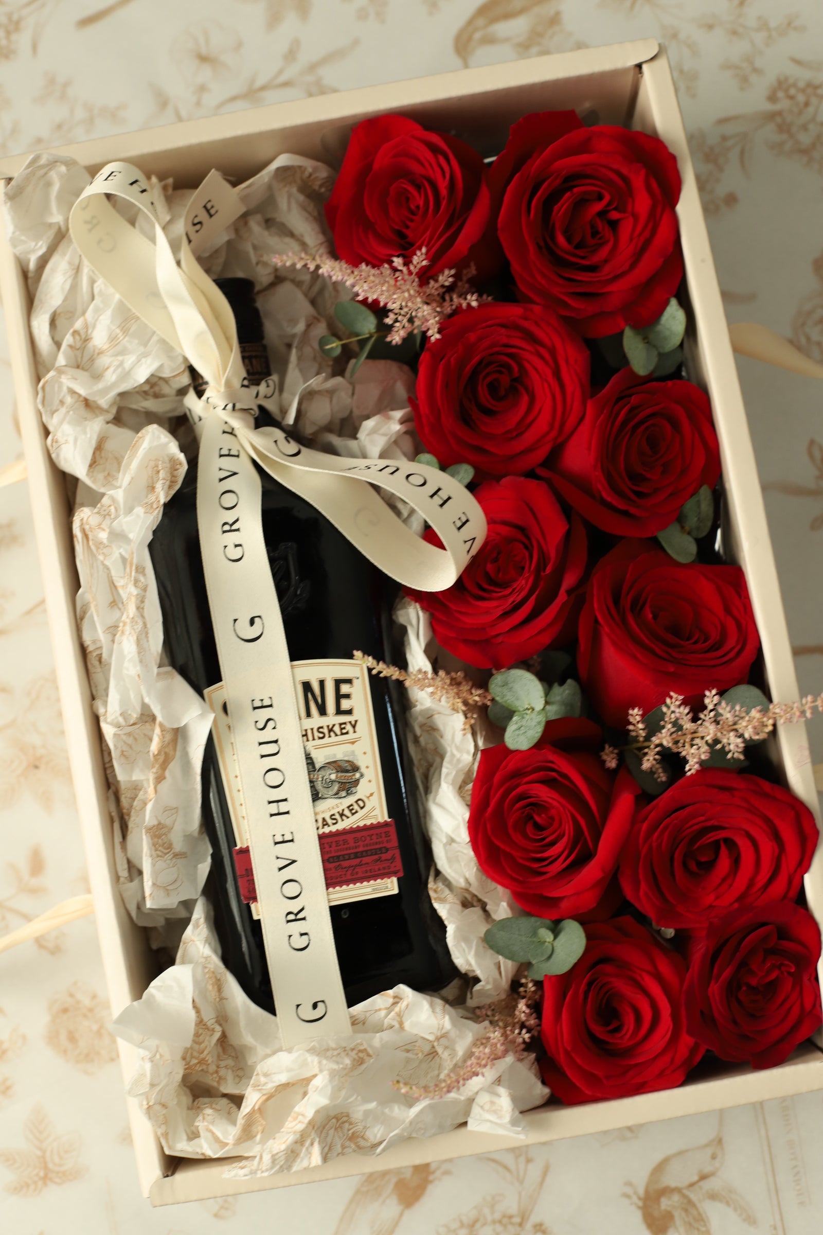 Red Roses and Wine Gift Box: Romantic Floral Gifts | GROVE HOUSE