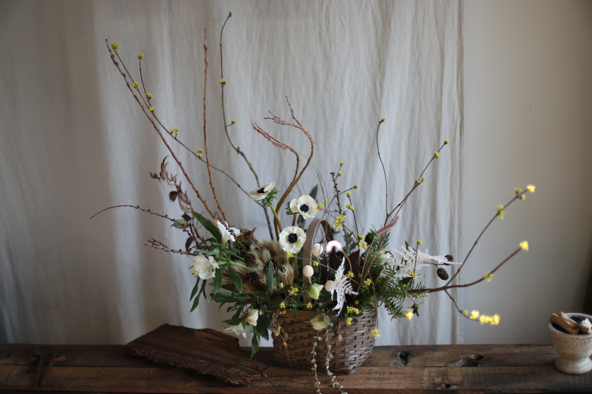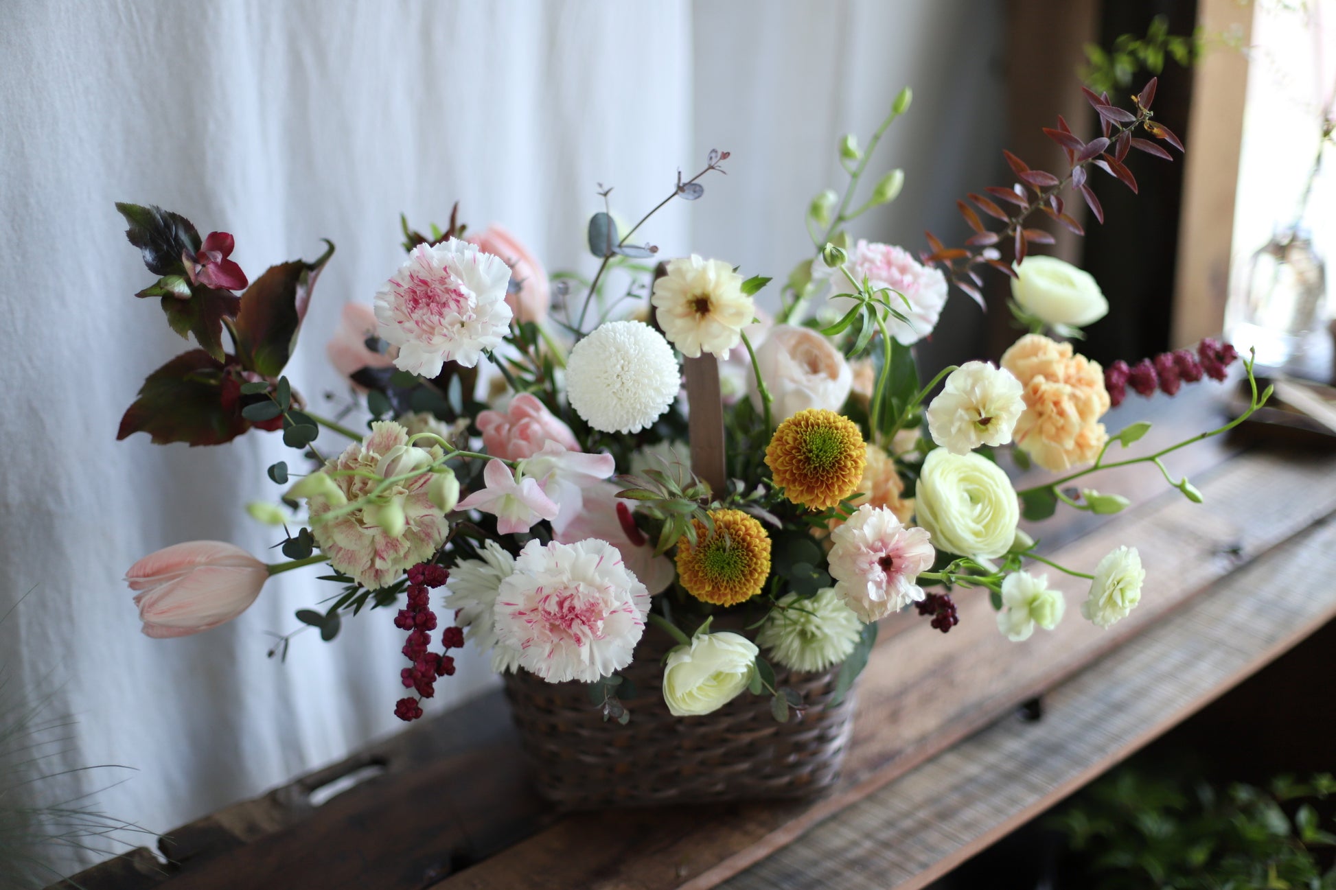 "Create a flower basket with shades of White and Pastel for someone special in your life. "