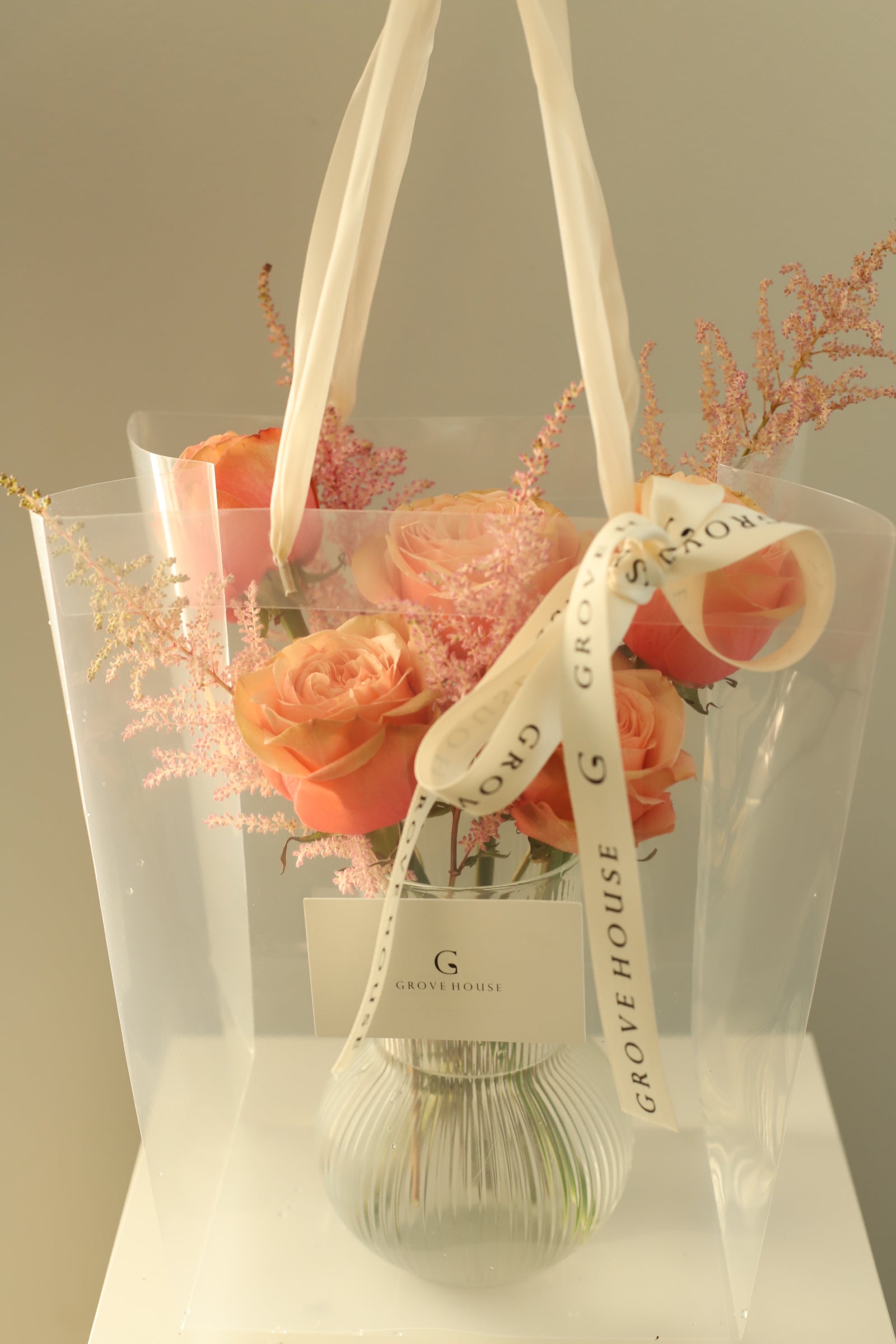 Signature Splendor: Premium Roses with Our Exclusive Transparent Bag and Elegant Ribbon - Elevate Your Moments with Floral Beauty