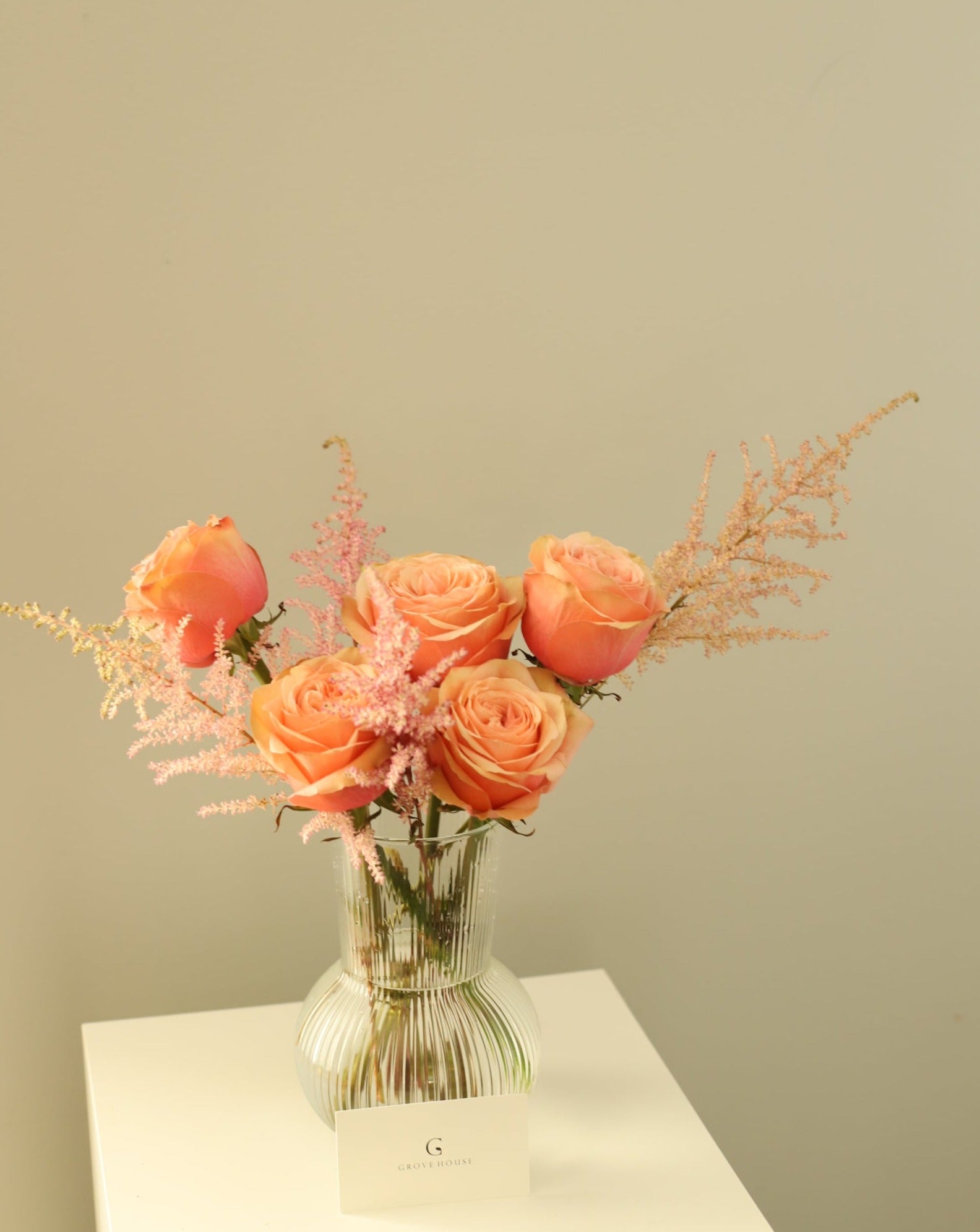 Standard: A vase arrangement featuring 5-7 roses complemented by classic filler flowers.